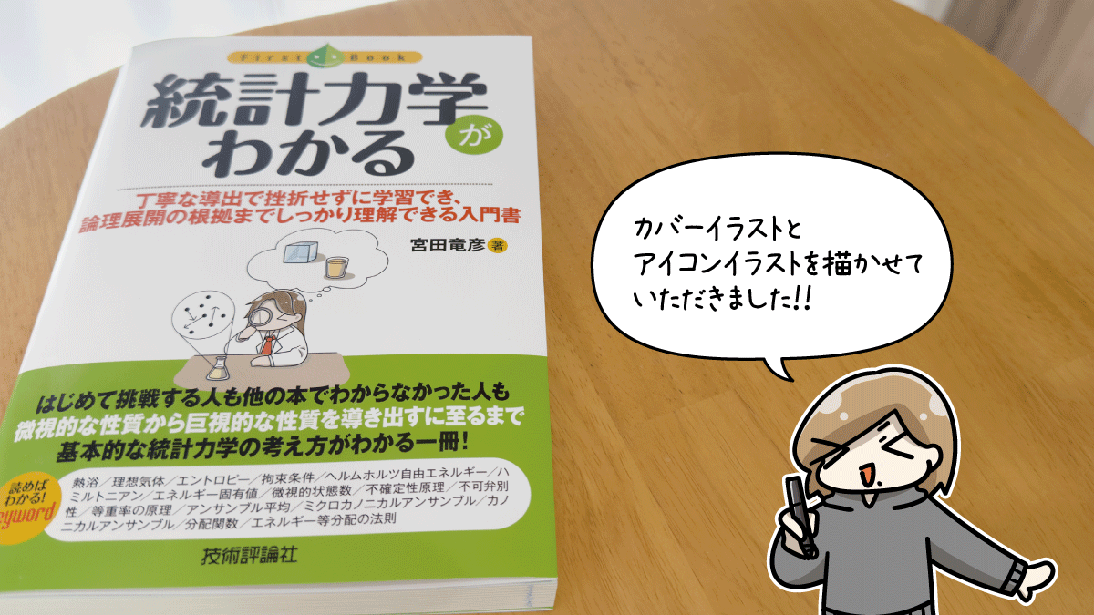 先月3月9日に技術評論社から発売された書籍ファーストブックシリーズ『統計力学がわかる』のカバーイラスト及び、誌面内のアイコンイラストを描かせていただきました!自身の書籍以外でカバーイラストを描き下ろすことは初めてだったので、なんだかドキドキしています。